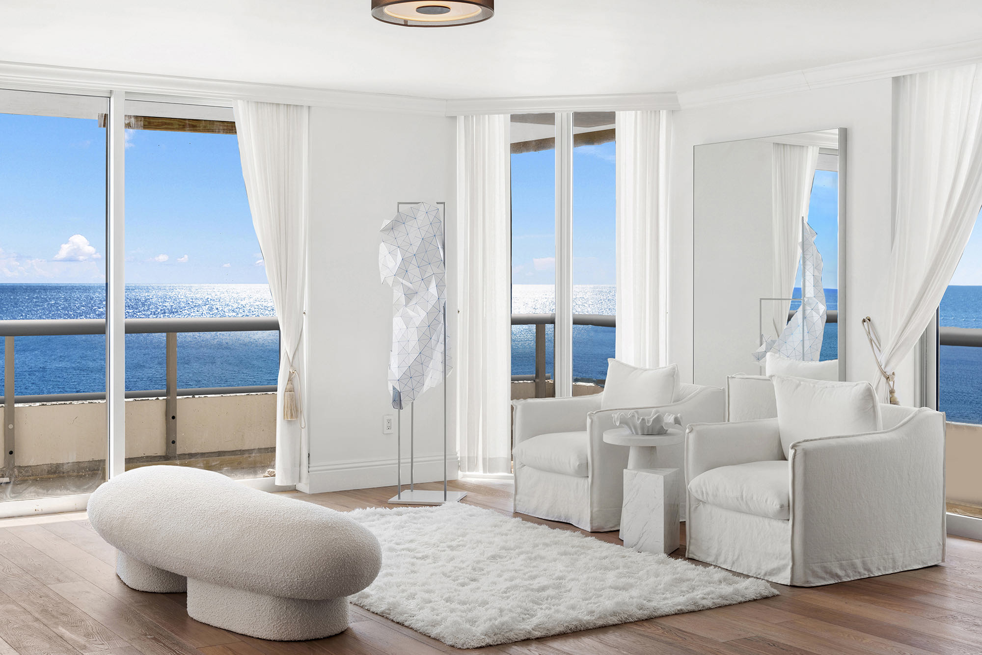 Originally a 5-bedroom unit that can be easily converted back, experience ultimate luxury living in this EXCLUSIVE Miami Beach gem. Situated in a boutique 15-story building, Villa Di Mare, with only ONE UNIT per floor, this residence offers a 360-DEGREE VIEW and an 800 SQ FT WRAP-AROUND BALCONY. The unit features 4 BEDS, 5.5 BATHS, a PRIVATE ELEVATOR, and 3 PARKING SPACES! Spanning an expansive 4,599 SQ FT of fully updated living space, it is designed for entertainment, boasting a professional automation system, marble and hardwood floors, and a chef's kitchen with top-of-the-line appliances. Enjoy the security and convenience of 24-hour personnel, a heated pool, gym, sauna, kid's room, and beach services.